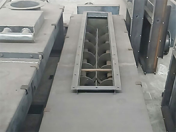 双轴螺旋输送机原理是在两条无缝钢管内分别装有一根实体螺旋,其中一根是左旋,另一根是右旋。工作时两根螺旋通过在轴伸位置的一对齿轮啮合转动,由于螺旋体的转动,使物料作轴向移动,从而达到输送目的。双轴螺旋输送机是冶金、建材、化工、粮食及机械加工等部门广泛应用的一种连续输送设备。